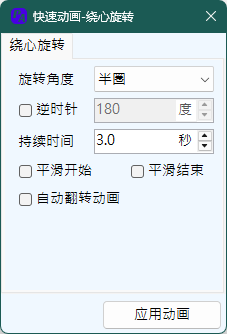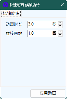 该功能可以创建一个图形绕一条直线轴线3D旋转的模拟动画,实际是通过缩放动画实现的。因此,某些情况下,可能看起来并不像是在进行3D旋转。